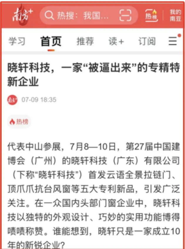 7月9日南方日报、南方+客户端推出报道,关注晓轩科技坚持自立自强,狠抓科技创新,闯出发展新路,对晓轩科技取得的初步成果予以点赞。