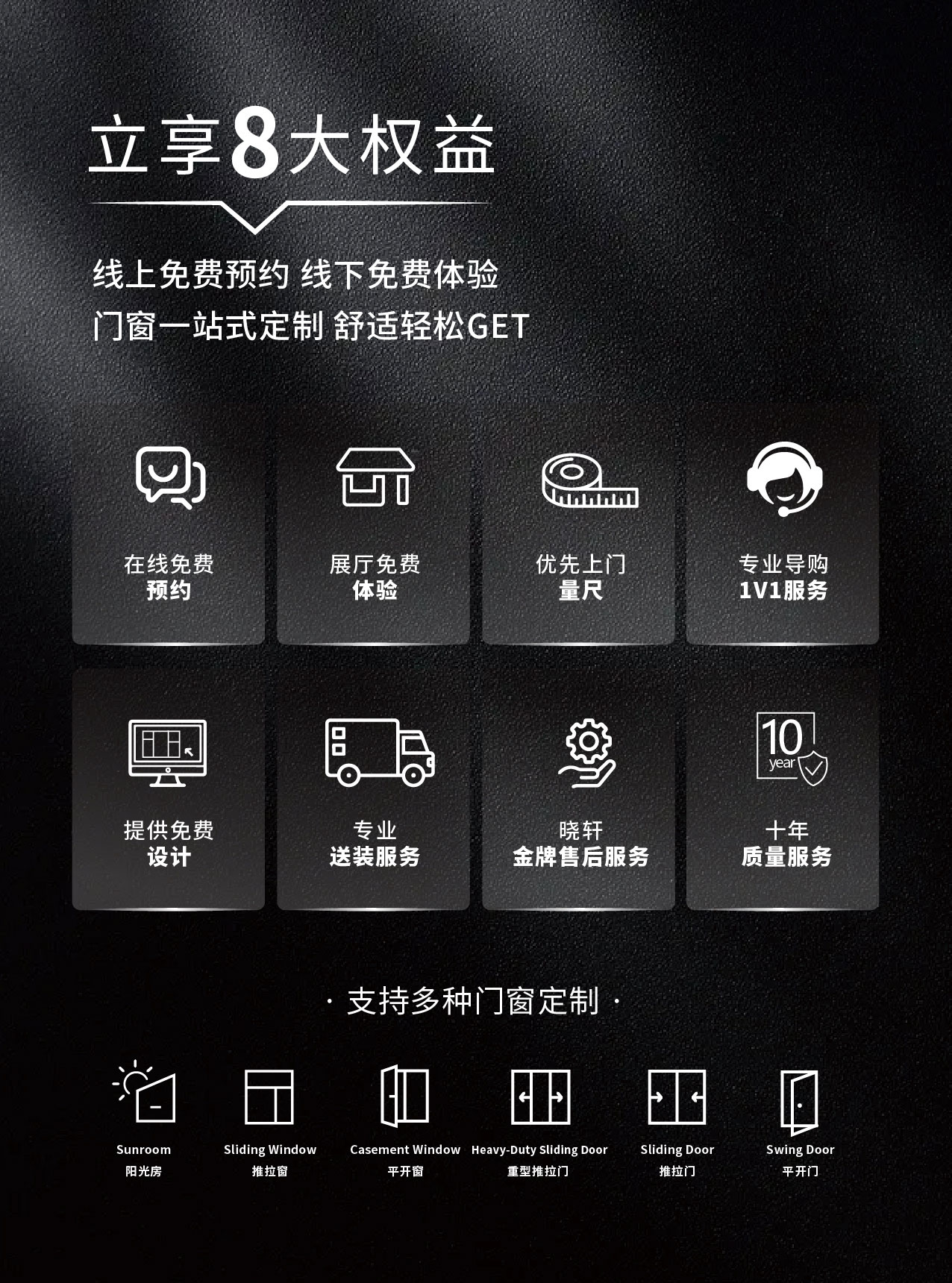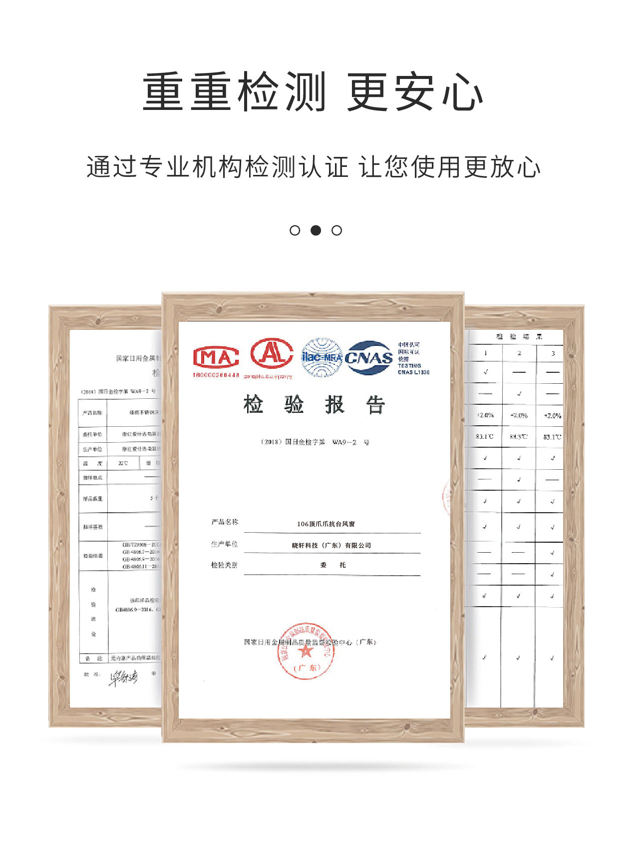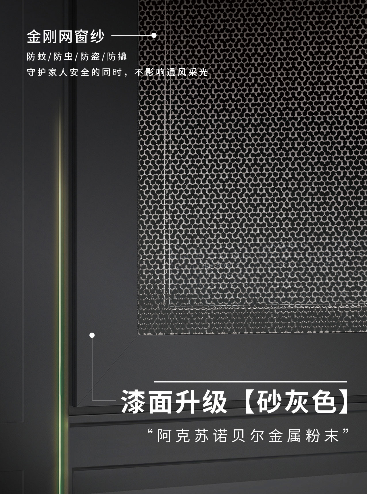 创新型钢爪设计,二级调节体嵌墙紧锁,抗风安全系数达传统窗3.6倍,拥有超高标准的水密性能、气密性能、抗风压性能、隔音性能、保温性能。